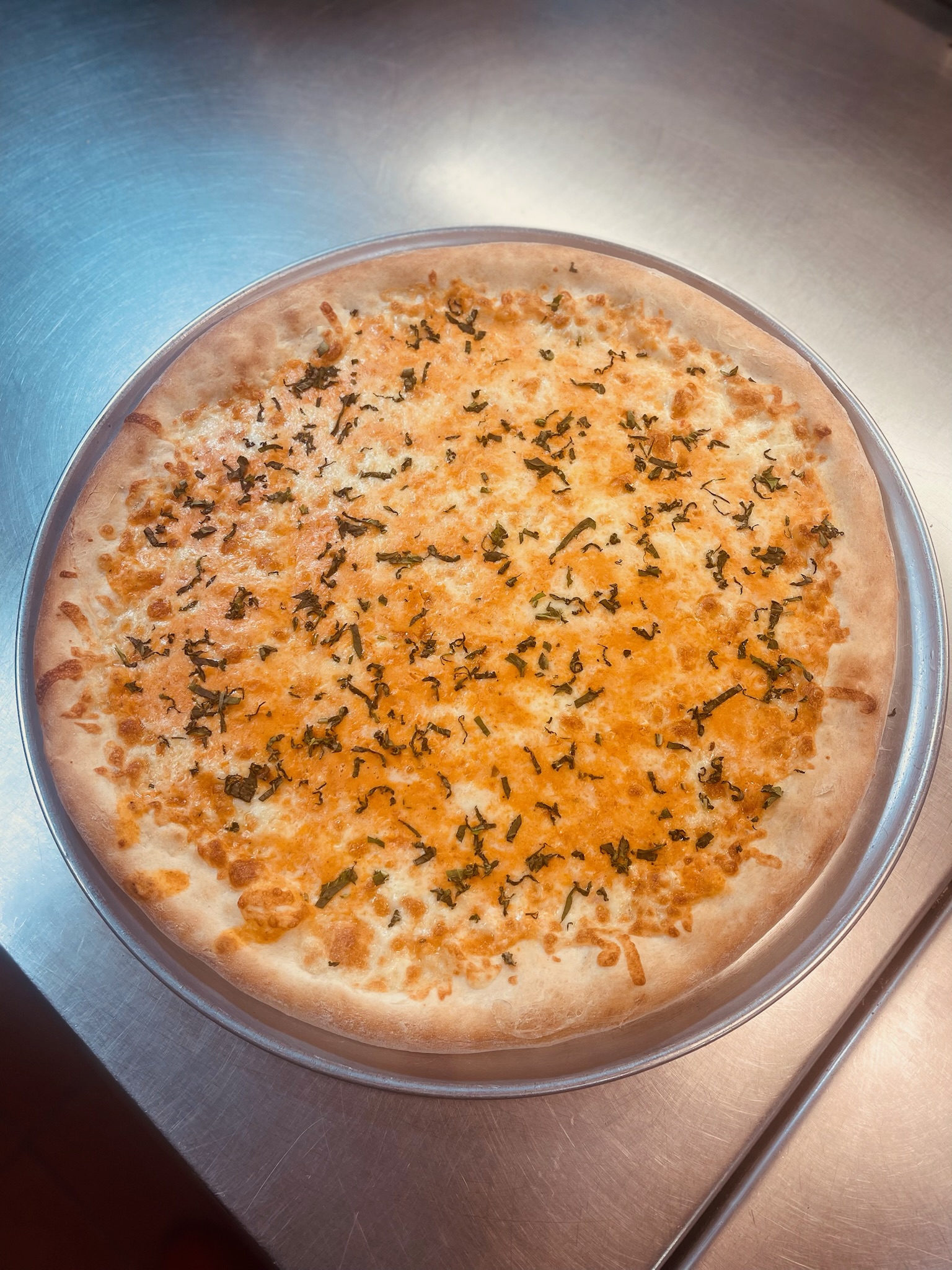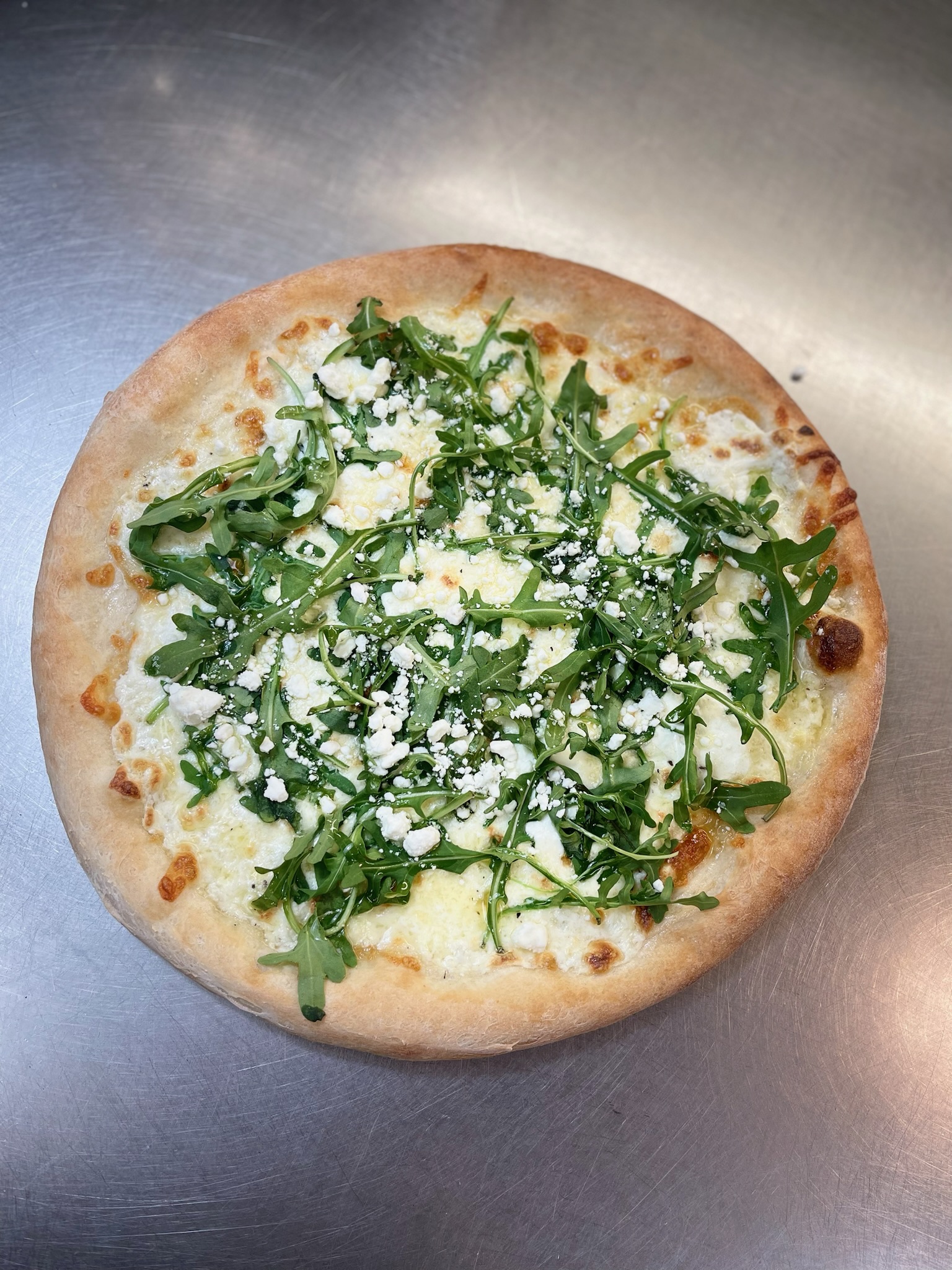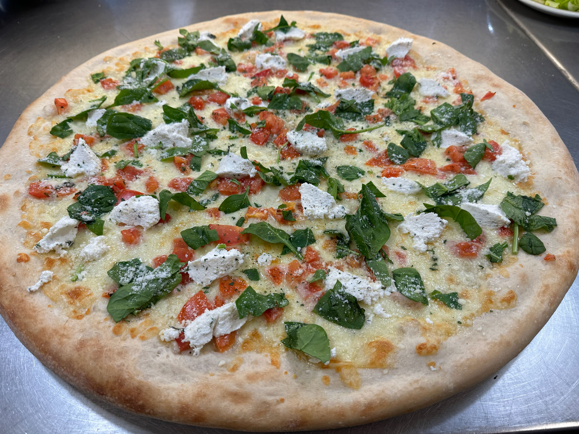 Alfredo sauce, fresh spinach, mozzarella, mushrooms, artichoke hearts, fresh basil and oregano.