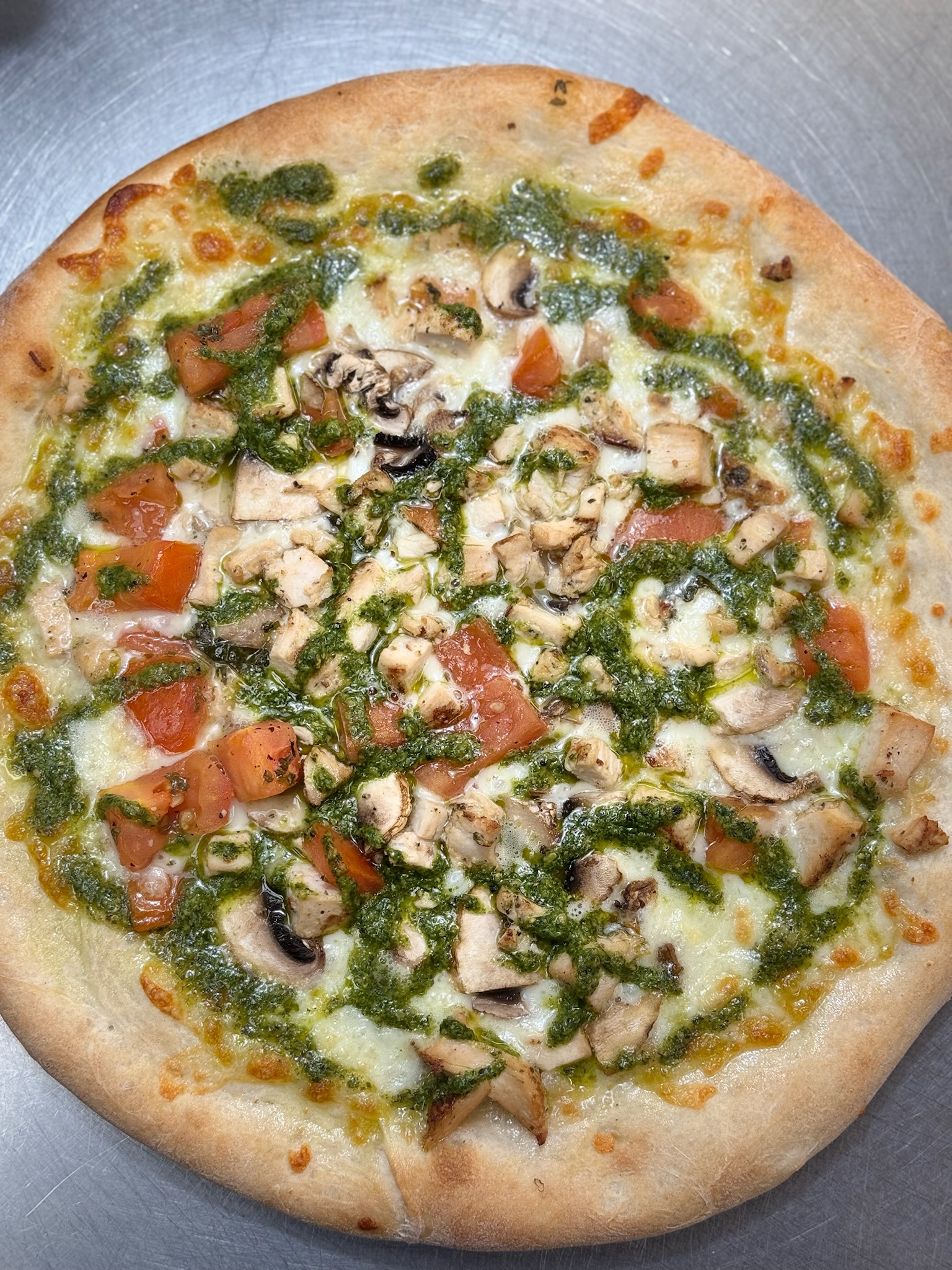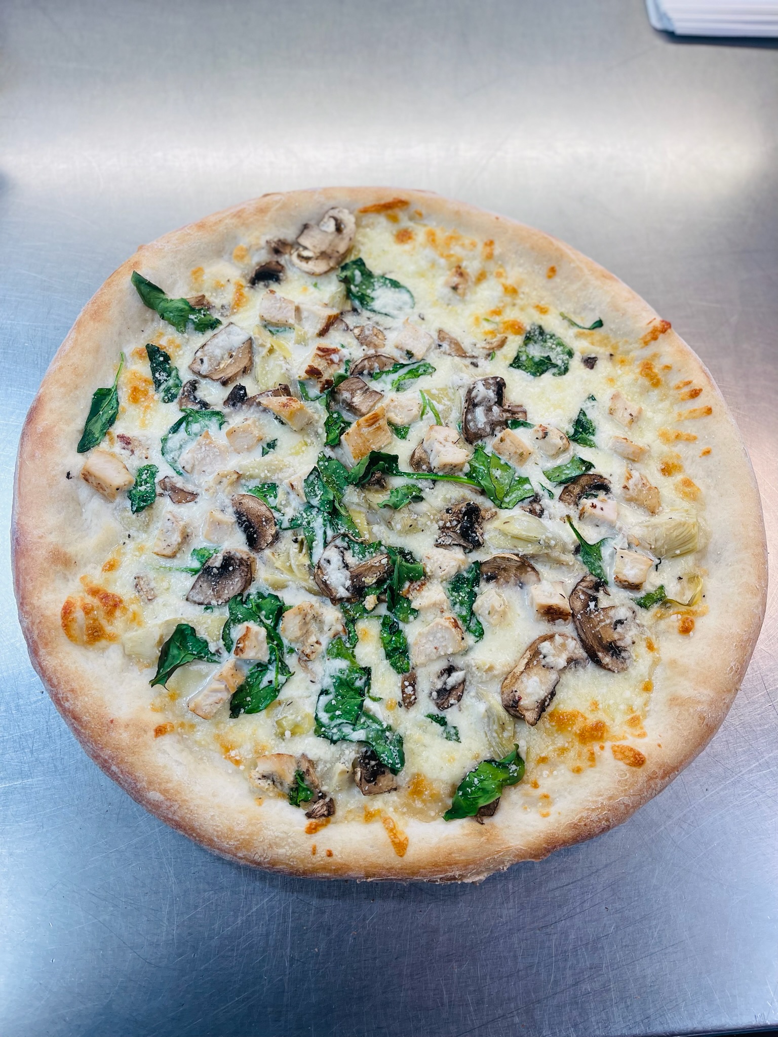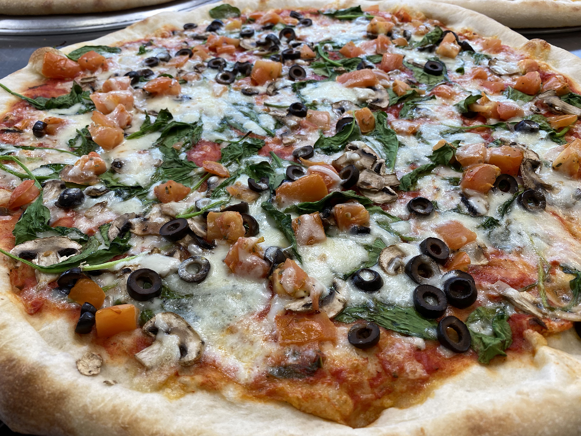 Bell peppers, Onions, Tomatoes, Black Olives, Fresh Mushrooms, Garlic, Broccoli, Spinach, Artichoke hearts