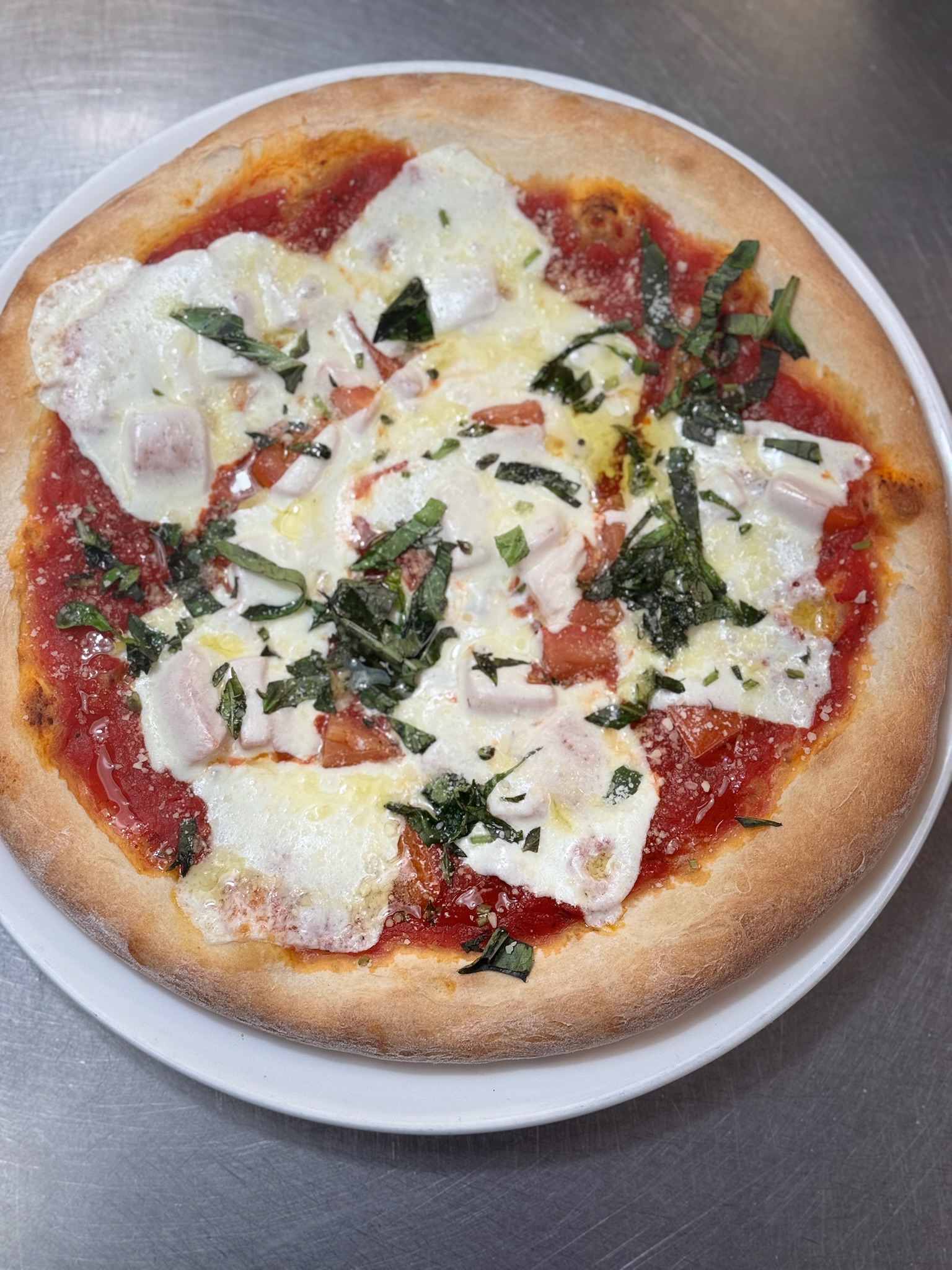 Buffalo Mozzarella, Parmigiano, Goat Cheese.